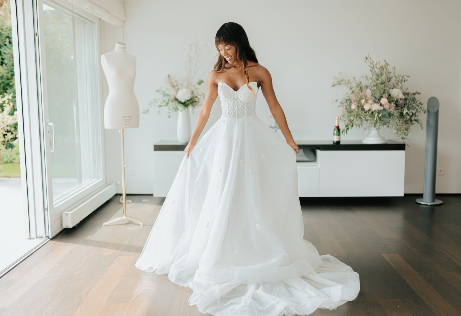 Die Braut wird persönlich von einer erfahrenen Stylistin oder sogar von der Designerin selbst empfangen und erhält einen exklusiven, privaten Raum.